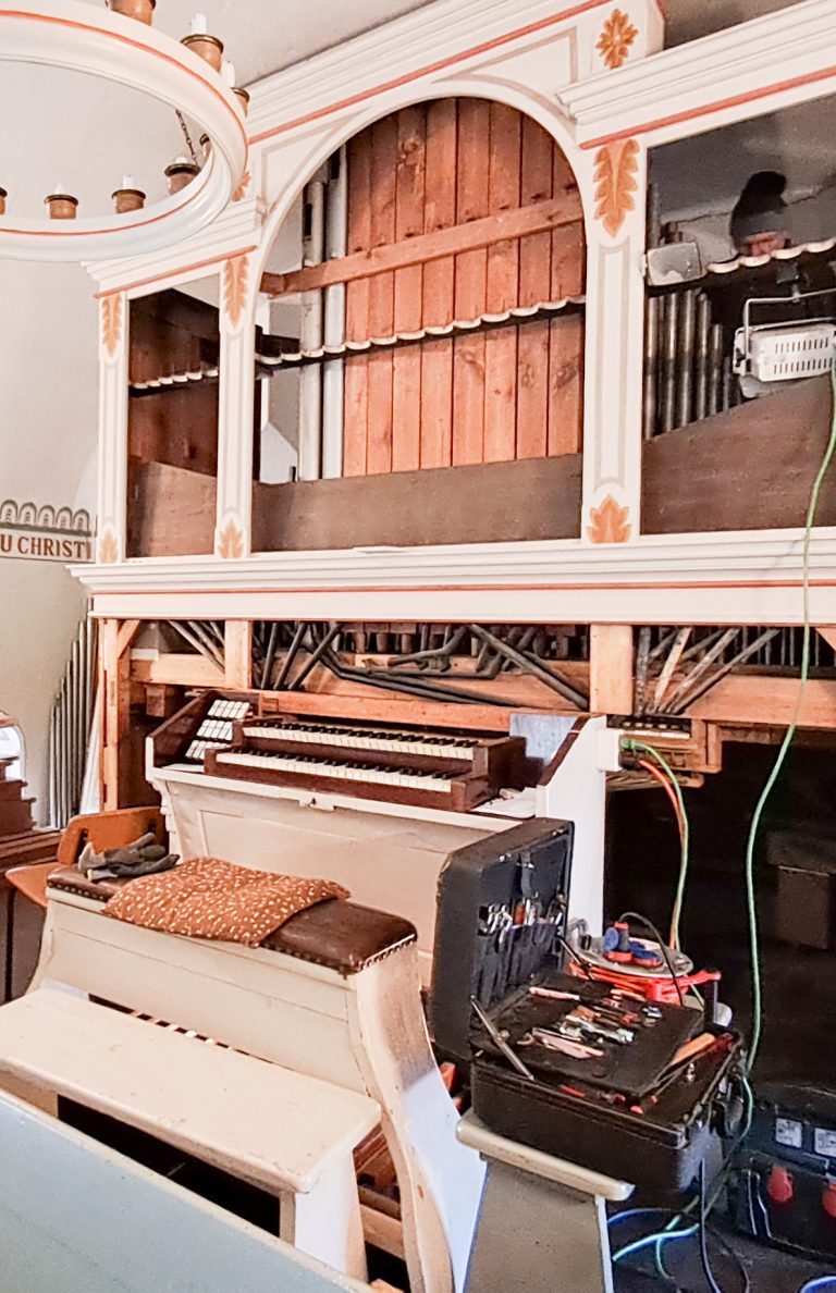 Die umfangreiche  Reparatur der Orgel von Franz Emil Keller in Zschaiten geht voran. Vor genau 100 Jahren wurde das Instrument vom Orgelbau Schmeißer aus Rochlitz erneuert.