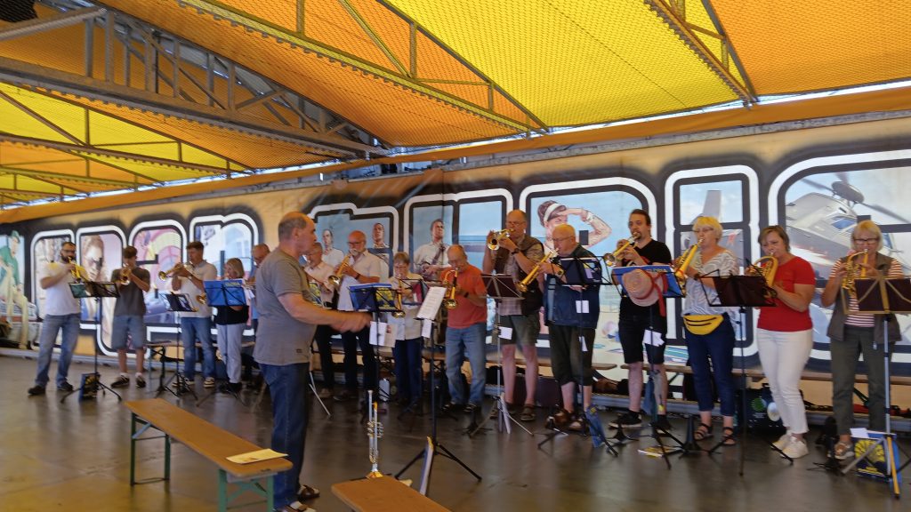 Der Markt begann am Freitag um 17 Uhr wieder mit einem Eröffnungsgottesdienst auf dem Autoscooter. Besonders eindrücklich war, dass fast 30 Posaunenbläser den Gottesdienst begleitet haben – wieder mehr als in den vergangenen Jahren. Ihre festliche Musik verlieh dem offenen Gottesdienst eine kräftigen und festlichen Klang. Viele Besucher waren versammelt und ließen sich von der Mischung aus Andacht und Volksfest-Atmosphäre begeistern.